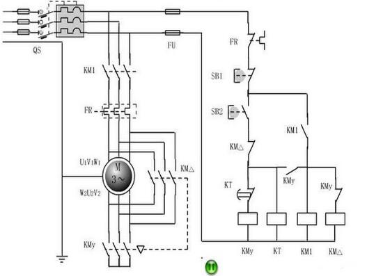 星三角啟動器實際上是一個降壓啟動器,啟動器在啟動時將電動機的定子繞組接成星形,待轉速升至接近額定轉速時,再改接成三角形,以減小啟動電流。 星三角啟動的啟動原理1、當負載對電動機啟動力矩無嚴格要求又要限制電動機啟動電流、電機滿足380V/Δ接線條件、電機正常運行時定子繞阻接成三角形時才能采用星三角啟動方法。 2、該方法是:在電機啟動時將電機接成星型接線,當電機啟動成功后再將電機改接成三角型接線(通過雙投開關迅速切換)。 3、由于電機啟動電流與電源電壓成正比,而此時電網提供的啟動電流只有全電壓啟動電流的1/3,因此其啟動力矩也只有全電壓啟動力矩的1/3。 4、星三角啟動屬降壓啟動,它是以犧牲功率為代價換取降低啟動電流來實現的,所以不能一概而論以電機功率的大小來確定是否需采用星三角啟動,還要看是什么樣的負載。一般在啟動時負載輕、運行時負載重的情況下可采用星三角啟動,通常鼠籠型電機的啟動電流是運行電流的5-7倍,而電網對電壓要求一般是正負10%,為了使電機啟動電流不對電網電壓形成過大的沖擊,可以采用星三角啟動。一般要求在鼠籠型電機的功率超過變壓器額定功率的10%時就要采用星三角啟動。 5、在實際使用過程中,有時電機功率為11KW就需要星三角啟動,如額定功率11KW的風機在啟動時電流為7-9倍(100A左右),按正常配置的熱繼電器根本啟動不了(關風門也沒用),熱繼電器配太大又無法起到保護電機的作用,所以建議采用星三角啟動。 星三角啟動的使用條件1、當負載對電動機啟動力矩無嚴格要求又要限制電動機啟動電流且電機滿足380V/Δ接線條件才能采用星三角啟動方法; 2、該方法是:在電機啟動時將電機接成星型接線,當電機啟動成功后再將電機改接成三角型接線(通過雙投開關迅速切換); 3、因電機啟動電流與電源電壓成正比,此時電網提供的啟動電流只有全電壓啟動電流的1/3。 星三角啟動,屬降壓啟動,是以犧牲功率為代價來換取降低啟動電流來實現的。所以不能一概而輪,以電機功率的大小來確定是否需采用星三角啟動,還的看是什么樣的負載,一般在需要啟動時負載輕,運行時負載重尚可采用星三角啟動,一般情況下鼠籠型電機的啟動電流是運行電流的5—7倍,而對電網的電壓要求一般是正負10%。為了不形成對電網電壓過大的沖擊所以要采用星三角啟動,一般要求在鼠籠型電機的功率超過變壓器額定功率的10%時就要采用星三角啟動。只有鼠籠型電機才采用星三角啟動。 星三角啟動的實現方法在電機啟動時將電機接成星型接線,當電機啟動成功后再將電機改接成三角型接線(通過雙投開關迅速切換;